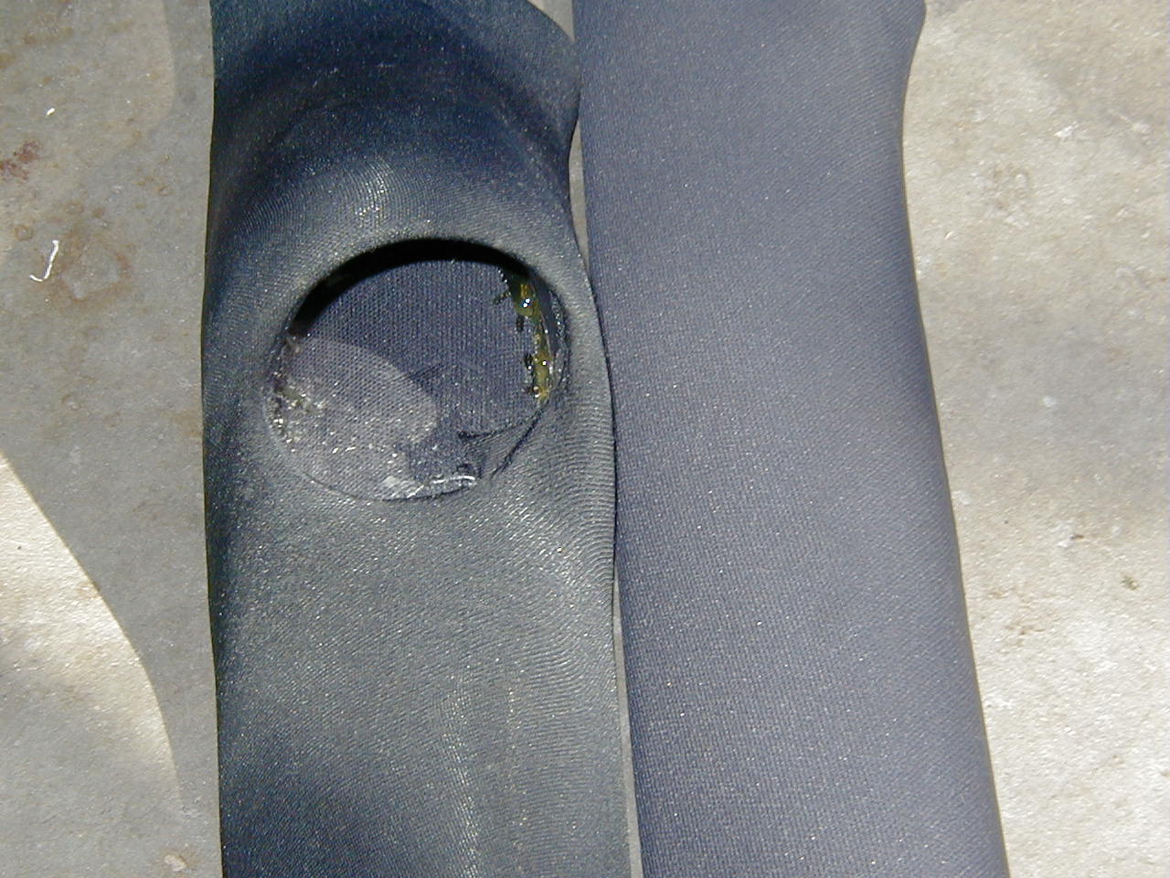 right thru into the footwell area! :-) Notice the tools (right-side pic)